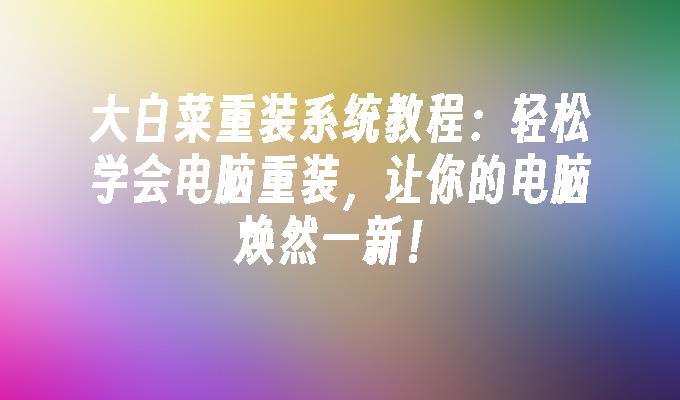 大白菜怎么重装系统?了解大白菜重装系统的方法和步骤,让您轻松解决系统问题。快速、简单、安全的重装系统教程,让您的大白菜恢复如新。立即了解!