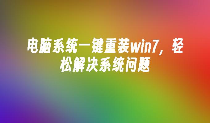 Win7系统一键重装,快速解决电脑问题。无需繁琐操作,只需点击一键即可完成重装,节省时间和精力。让您的电脑焕然一新,恢复流畅运行。立即体验,享受高效便捷的重装服务。