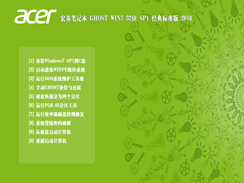 宏基笔记本32位系统w7纯净版无插件,无木马,无病毒,安装宏基笔记本32位win7纯净版过程中会自动删除硬盘上可能存在的AUTORUN或者灰鸽子病毒.宏基win732纯净版全程无值守傻瓜式安装.