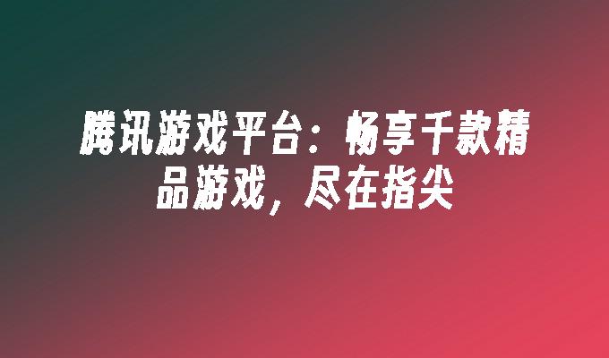 腾讯游戏平台:畅享千款精品游戏,尽在指尖