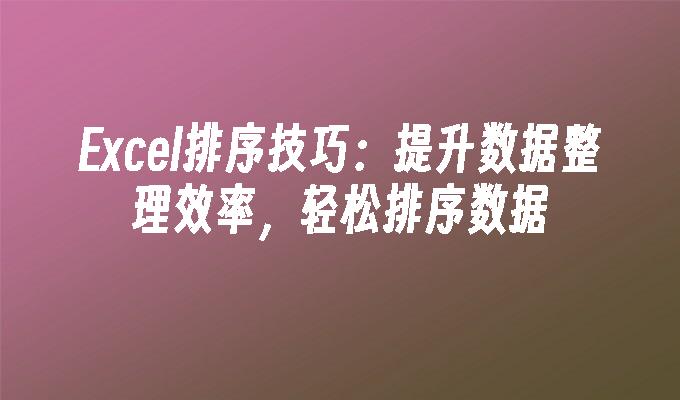 简介:本文将介绍Excel排序技巧,帮助提升数据整理效率,轻松排序数据。通过学习这些技巧,您可以更快速地处理大量数据,提高工作效率。
