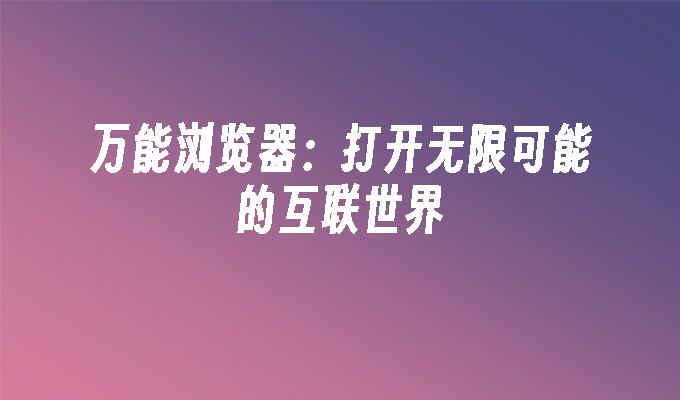 万能浏览器是一款功能强大的互联网浏览器,它能够打开无限可能的互联世界。无论是浏览网页、观看视频、下载文件还是进行在线购物,万能浏览器都能满足你的需求。它不仅提供了快速、稳定的浏览体验,还具备丰富的扩展功能和个性化设置,让你的上网体验更加便捷和舒适。
