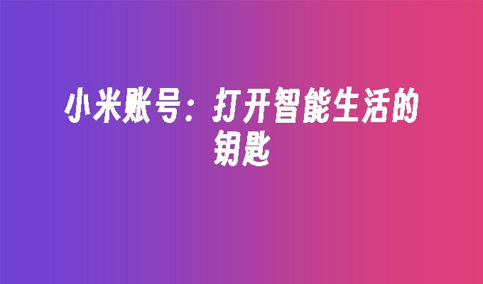 小米账号:打开智能生活的钥匙