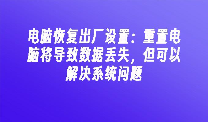 电脑恢复出厂设置:重置电脑将导致数据丢失,但可以解决系统问题