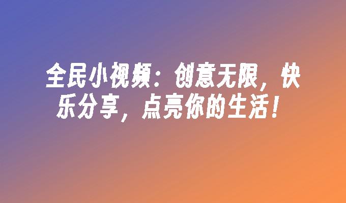 全民小视频:创意无限,快乐分享,点亮你的生活!