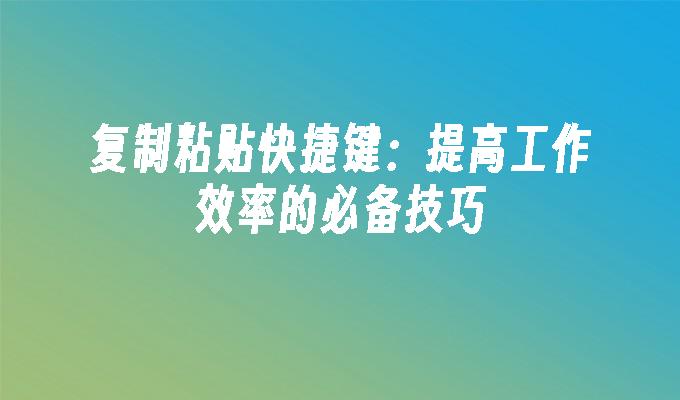 简介:复制粘贴快捷键:提高工作效率的必备技巧。在日常工作中,我们经常需要复制和粘贴文本、图片等内容,而使用快捷键可以大大提高工作效率。本文将介绍如何使用快捷键来进行复制和粘贴操作,帮助读者提高工作效率。