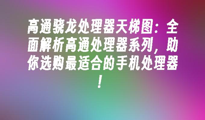 本文将全面解析高通骁龙处理器系列,通过高通骁龙处理器天梯图,帮助读者选购最适合的手机处理器。了解不同型号的处理器的特点和性能,对于购买手机时的决策非常重要。