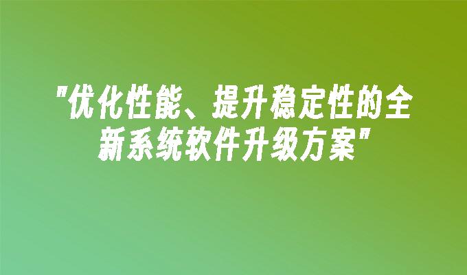 简介:随着科技的不断发展,电脑和手机已经成为我们生活中不可或缺的工具。然而,随着时间的推移,系统软件的性能和稳定性可能会出现问题。为了解决这些问题,我们需要一种全新的系统软件升级方案,能够优化性能并提升稳定性。本文将介绍这一方案的重要性,并提供一些实用的方法和技巧。