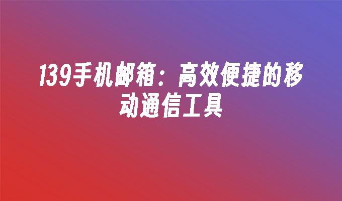 简介:139手机邮箱是一款高效便捷的移动通信工具,它为用户提供了方便快捷的邮件收发功能,使得移动办公变得更加便利。无论是在工作还是生活中,139手机邮箱都能够满足用户的通信需求,提高工作效率,节省时间和精力。