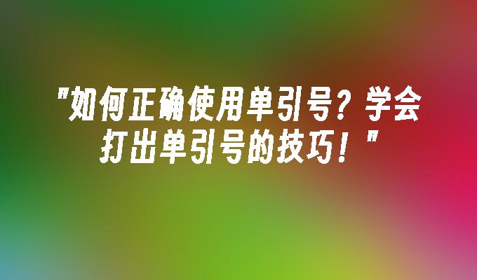 如何正确使用单引号?学会打出单引号的技巧!