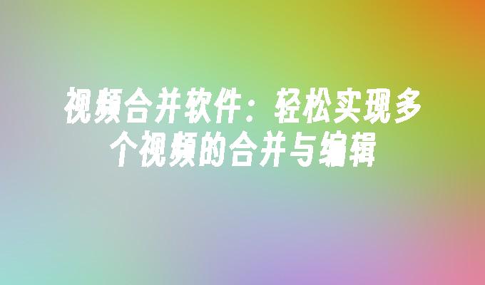 视频合并软件:轻松实现多个视频的合并与编辑
