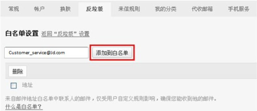 4、如果垃圾邮件里也没有,那么还有一个方法,就是在网易邮箱设置里面,找到黑白名单设置,在白名单里添加你要接收信件的收信人,设置好了之后就可以正常接收到邮件了。