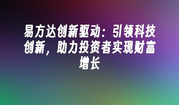 易方达创新驱动:引领科技创新,助力投资者实现财富增长