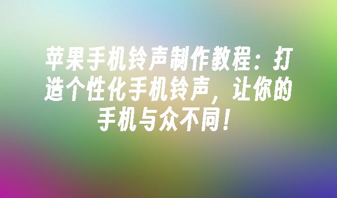 苹果手机铃声制作教程:打造个性化手机铃声,让你的手机与众不同!