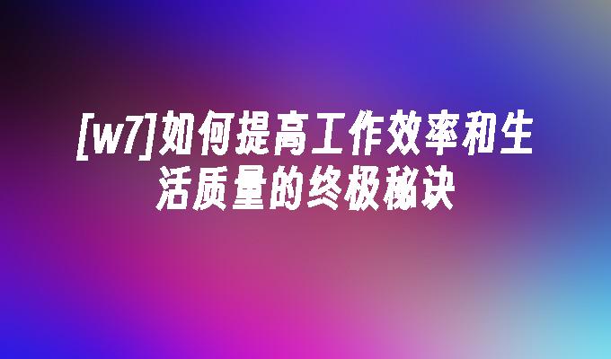 [w7]如何提高工作效率和生活质量的终极秘诀