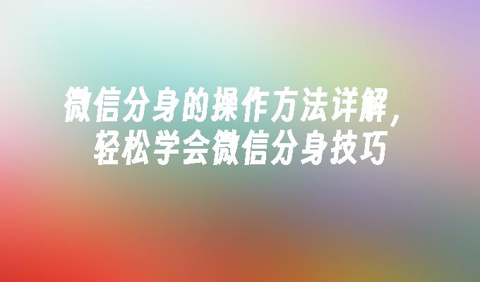 微信分身的操作方法详解,轻松学会微信分身技巧