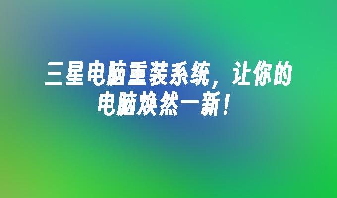 简介:三星电脑重装系统,让你的电脑焕然一新!重装系统是一种常见的电脑维护方法,可以清除电脑中的垃圾文件和病毒,提高电脑的运行速度和稳定性。本文将介绍如何使用三星电脑重装系统,让你的电脑焕然一新。