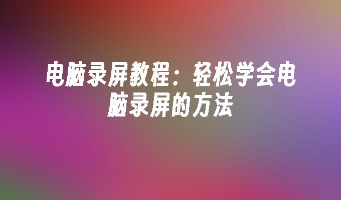 电脑怎么录屏, 电脑录屏方法, 电脑屏幕录制