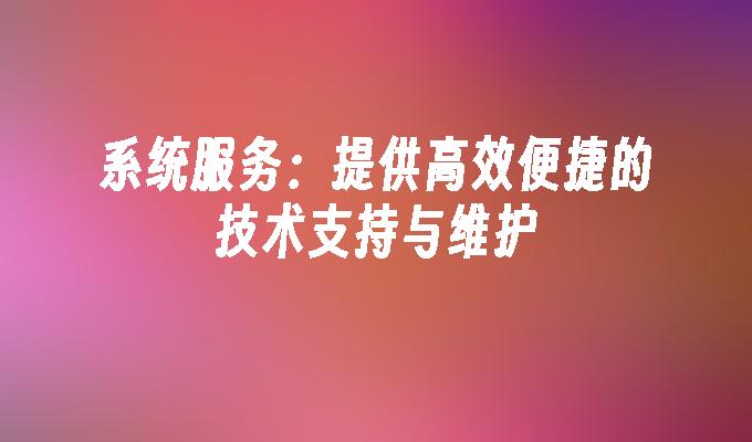 简介:系统服务是一项提供高效便捷的技术支持与维护的服务。它为用户提供了解决技术问题、优化系统性能和保障数据安全的重要帮助。本文将从多个方面详细阐述系统服务的重要性和价值。