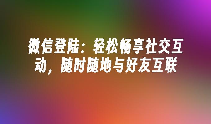 微信登陆:轻松畅享社交互动,随时随地与好友互联