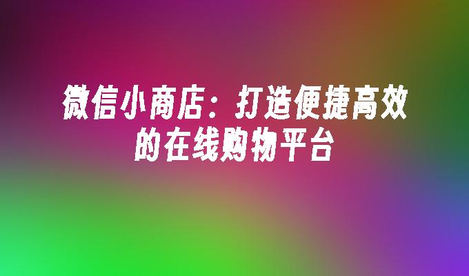 微信小商店:打造便捷高效的在线购物平台