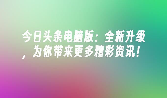今日头条电脑版:全新升级,为你带来更多精彩资讯!