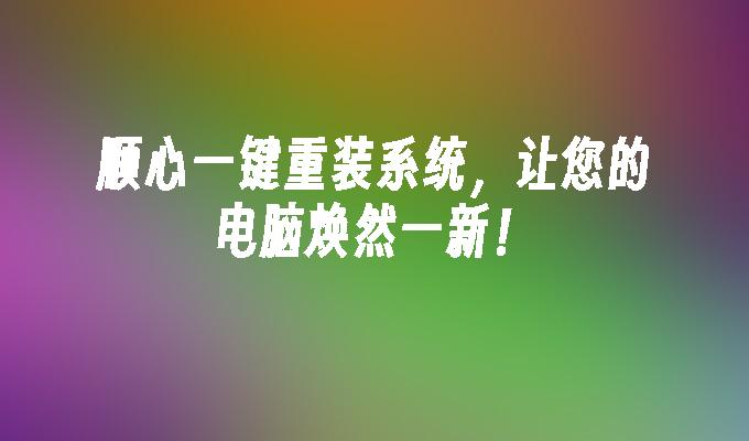 顺心一键重装系统是一款功能强大、操作简便的电脑重装系统工具。它能够帮助您轻松重装电脑系统,解决电脑卡顿、系统崩溃和病毒感染等问题,让您的电脑焕然一新。使用顺心一键重装系统,您可以省去繁琐的操作步骤,节省时间和精力。同时,它还提供了自动备份、系统优化、驱动更新和病毒清除等功能,保护您的个人信息和电脑安全。建议您定期使用顺心一键重装系统,保持电脑的良好状态,提升使用体验。
