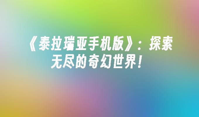 简介:《泰拉瑞亚手机版》是一款探索无尽奇幻世界的游戏。本文将介绍该游戏的特点和玩法,以及如何在手机上进行游戏。