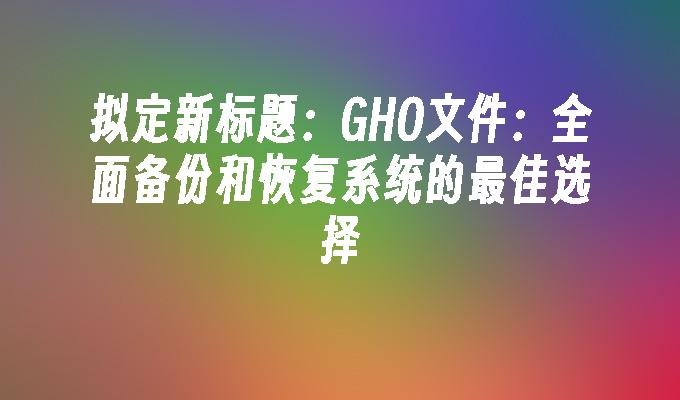 GHO文件:全面备份和恢复系统的最佳选择
