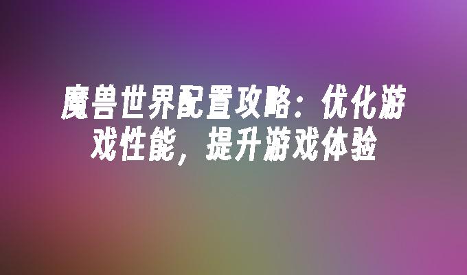 魔兽世界配置攻略:优化游戏性能,提升游戏体验