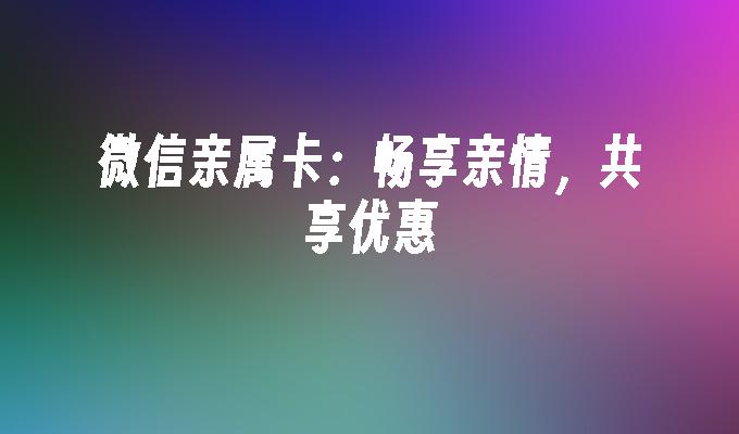 简介:微信亲属卡是一款能够让用户畅享亲情,共享优惠的服务。本文将介绍微信亲属卡的使用方法和优势,以及如何申请和管理亲属卡。