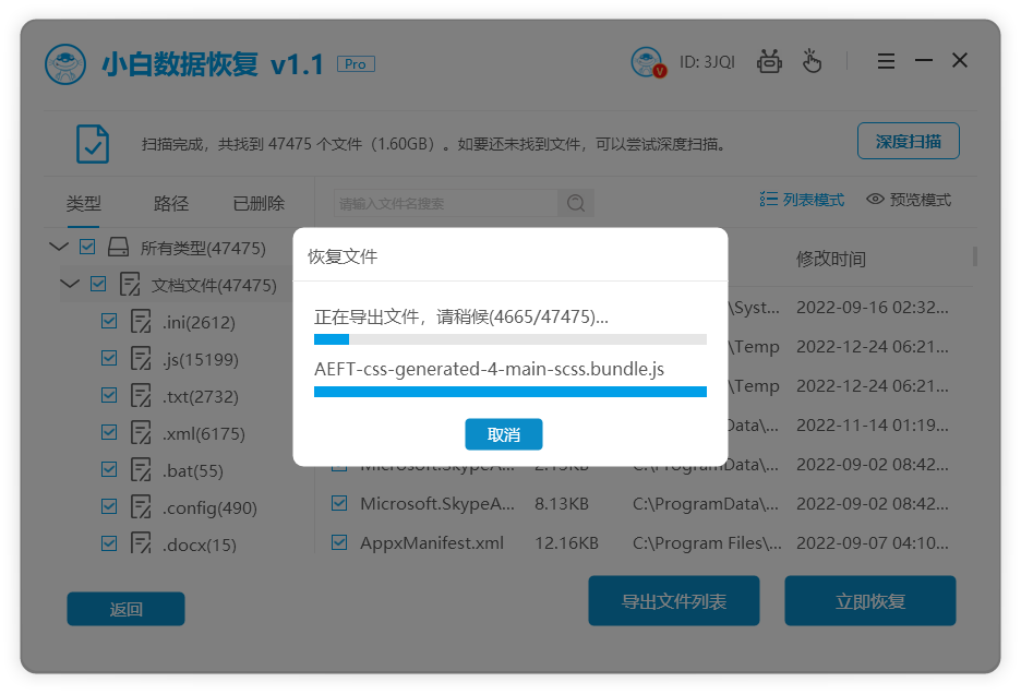 1、下载安装小白数据恢复工具,打开后点击误删除文件恢复,点击开始扫描。