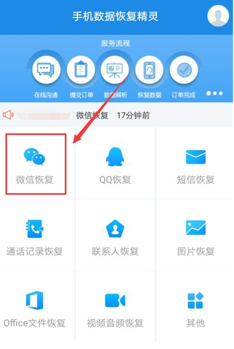 2、接下来将它打开,利用里面的微信恢复功能对删除的微信聊天记录进行恢复即可。