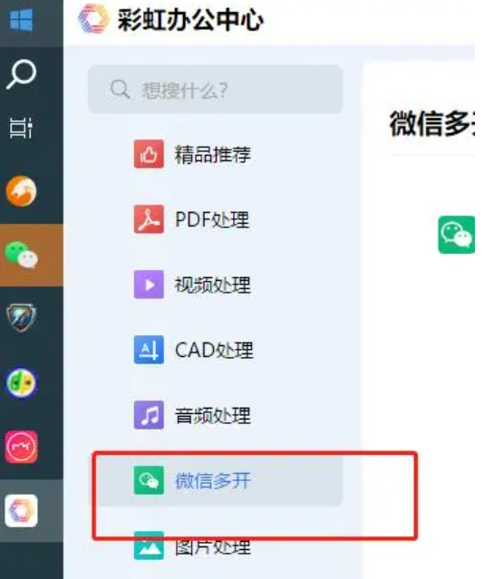2、在主页的左侧上面有着微信多开这一选项,我们直接点击进去。