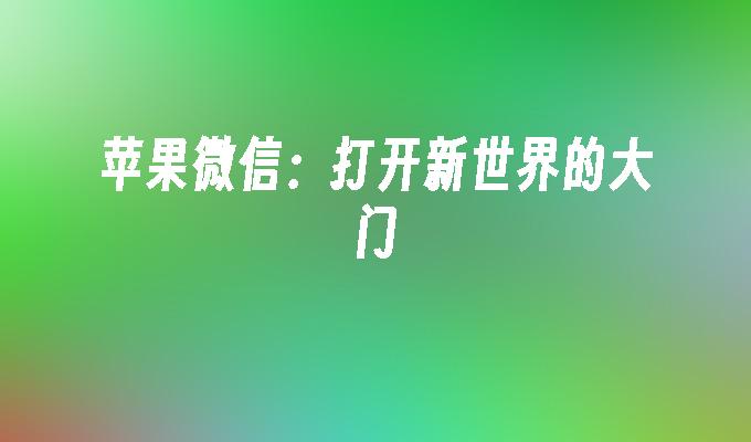苹果微信:打开新世界的大门