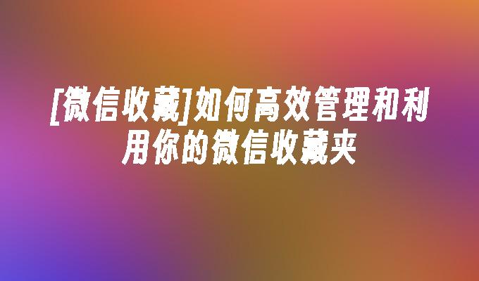[微信收藏]如何高效管理和利用你的微信收藏夹