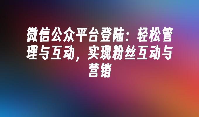 微信公众平台登陆:轻松管理与互动,实现粉丝互动与营销