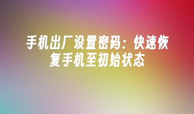 手机出厂设置密码:快速恢复手机至初始状态