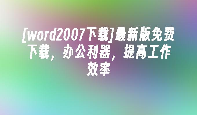 [word2007下载]最新版免费下载,办公利器,提高工作效率