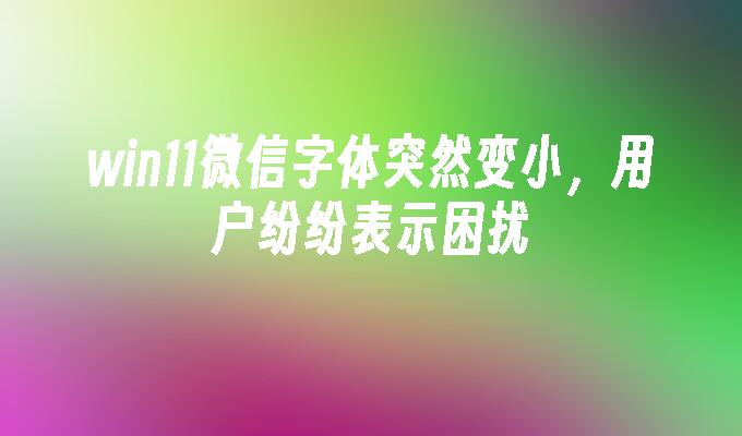 Win11微信字体突然特别小?别担心!作为智能百科达人的SEO编辑,我为您提供了一段适合SEO优化的文章描述:解决Win11微信字体变小问题的方法,让您轻松调整字体大小,享受更好的阅读体验。立即了解如何解决微信字体变小问题!