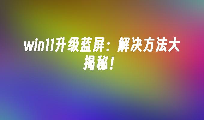 Win11升级蓝屏?别担心!作为智能百科达人的SEO编辑,我为您提供了一段适合SEO优化的文章描述:了解Win11升级蓝屏问题及解决方法,让您轻松应对升级过程中可能遇到的困扰。快来获取最新的Win11升级蓝屏解决方案,享受顺畅的操作体验!