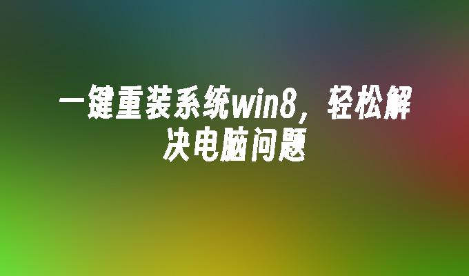 一键重装系统Win8,快速解决电脑问题。无需繁琐操作,轻松恢复系统原始状态。提供最新驱动程序和软件更新,保证电脑性能稳定流畅。立即下载一键重装系统Win8,让您的电脑焕然一新!
