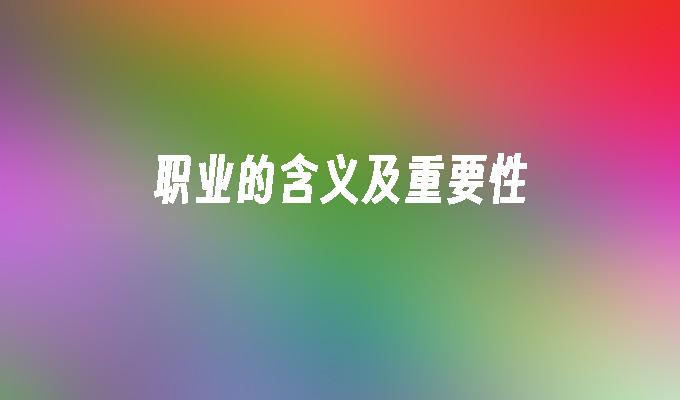 职业的含义及重要性