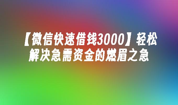 【微信快速借钱3000】轻松解决急需资金的燃眉之急