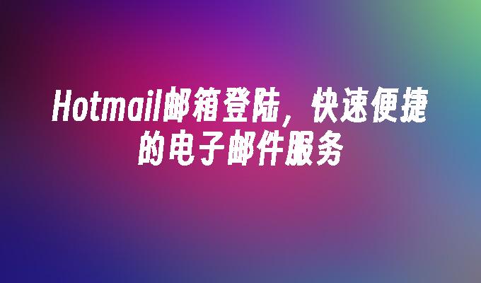 "使用Hotmail邮箱登陆,轻松管理您的电子邮件。Hotmail邮箱提供安全可靠的邮件服务,让您随时随地收发邮件。快速登陆Hotmail邮箱,畅享高效沟通体验。"