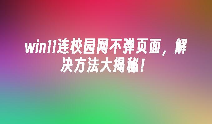 Win11连校园网不弹页面?解决方法尽在此!快速了解如何解决Win11连接校园网时出现页面弹窗问题。通过优化网络设置,调整防火墙配置,您可以轻松畅享校园网的快速连接体验。立即点击了解更多!