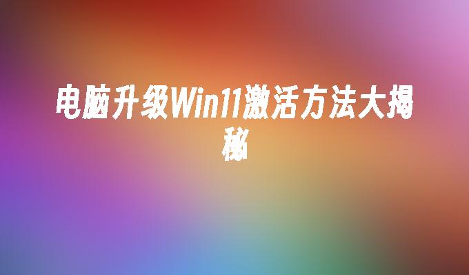 电脑升级Win11激活方法,详细介绍了如何通过简单步骤完成电脑升级并激活Win11操作系统。了解Win11升级的要求和步骤,以及如何激活系统,让您的电脑体验全新的功能和界面。快速、简便的操作,让您尽快享受Win11带来的优势。