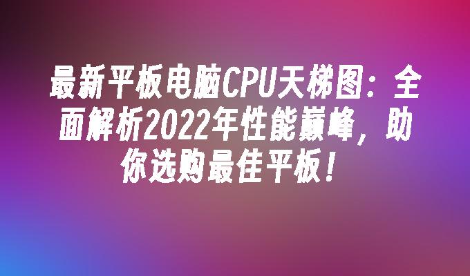 最新平板电脑CPU天梯图:全面解析2022年性能巅峰,助你选购最佳平板!