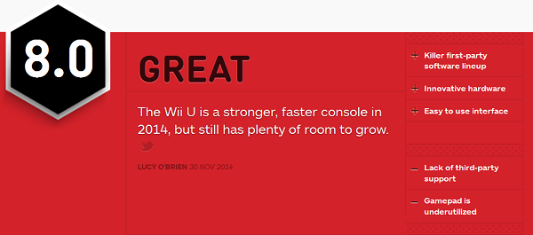 时隔两年IGN再为Wii U打分 任天堂自家游戏独树一帜