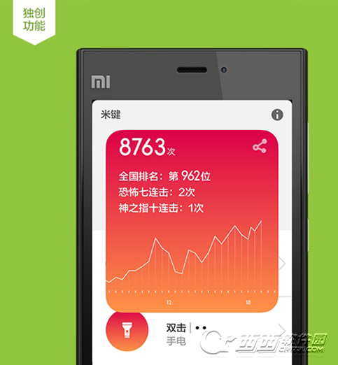 米键可以记录你点按成绩及排名,晒微博、 炫朋友圈让他们膜拜吧! 配合一键多功能,你可以自由创造连击十次的不同应用设置。